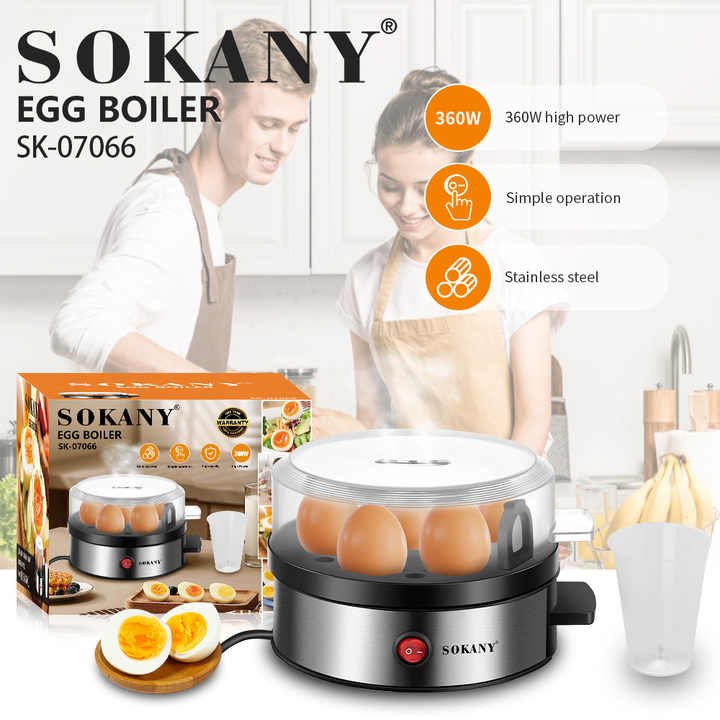 Make breakfast quick, easy, and nutritious with the Sokany SK-07066 Electric Egg Boiler. This compact and versatile appliance lets you boil up to 7 eggs at once to your preferred doneness—soft, medium, or hard—with perfect consistency every time -