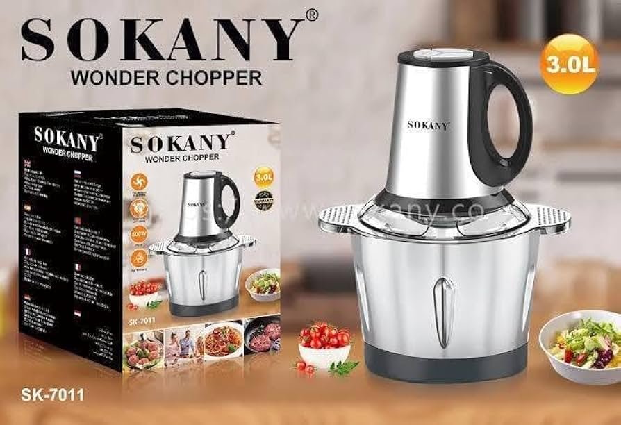 The Sokany Wonder Chopper SK-7011 is the ultimate multitasking kitchen appliance. With its powerful motor and generous 3-liter stainless steel bowl, you can easily grind meat, chop vegetables, and prepare large batches of your favorite ingredients. It features durable 4-blade system and multiple speed settings, allowing you to achieve the perfect texture for everything from chunky salsas to fine purees. The sleek design, non-slip base, and easy-to-clean removable parts make it a must-have tool for any modern home cook . -